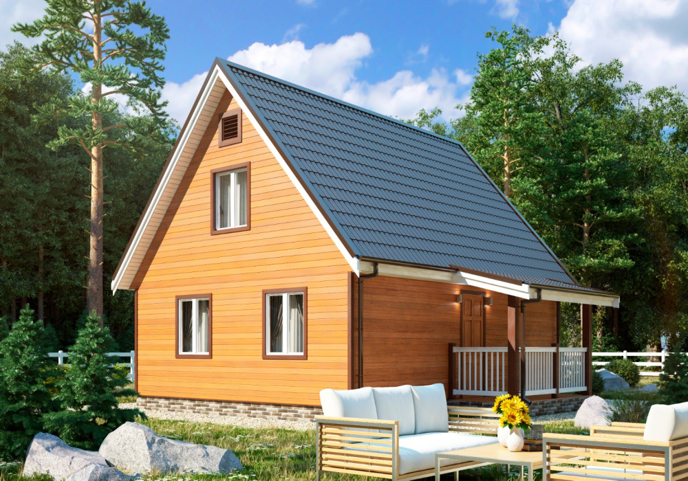 Дом для сезонного отдыха или длительного проживания со сроком возведения под ключ от 5 дней. Проект предусматривает несколько вариантов комплектации: для эксплуатации летом, осенью, а также с дополнительно утепленными фундаментом, стенами и межэтажными перекрытиями, которые обеспечат комфортную жизнь в зимнее время.