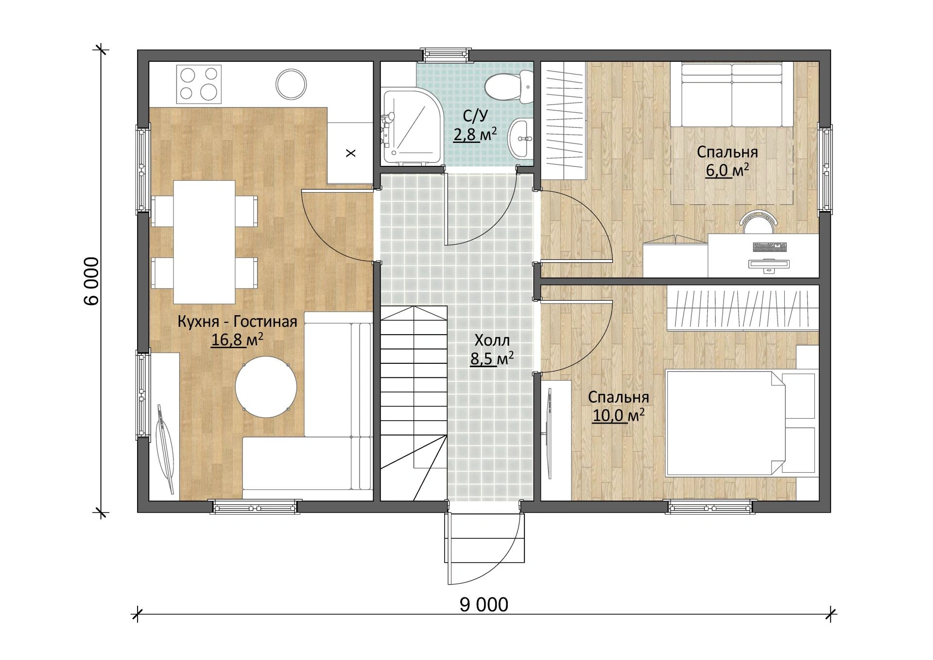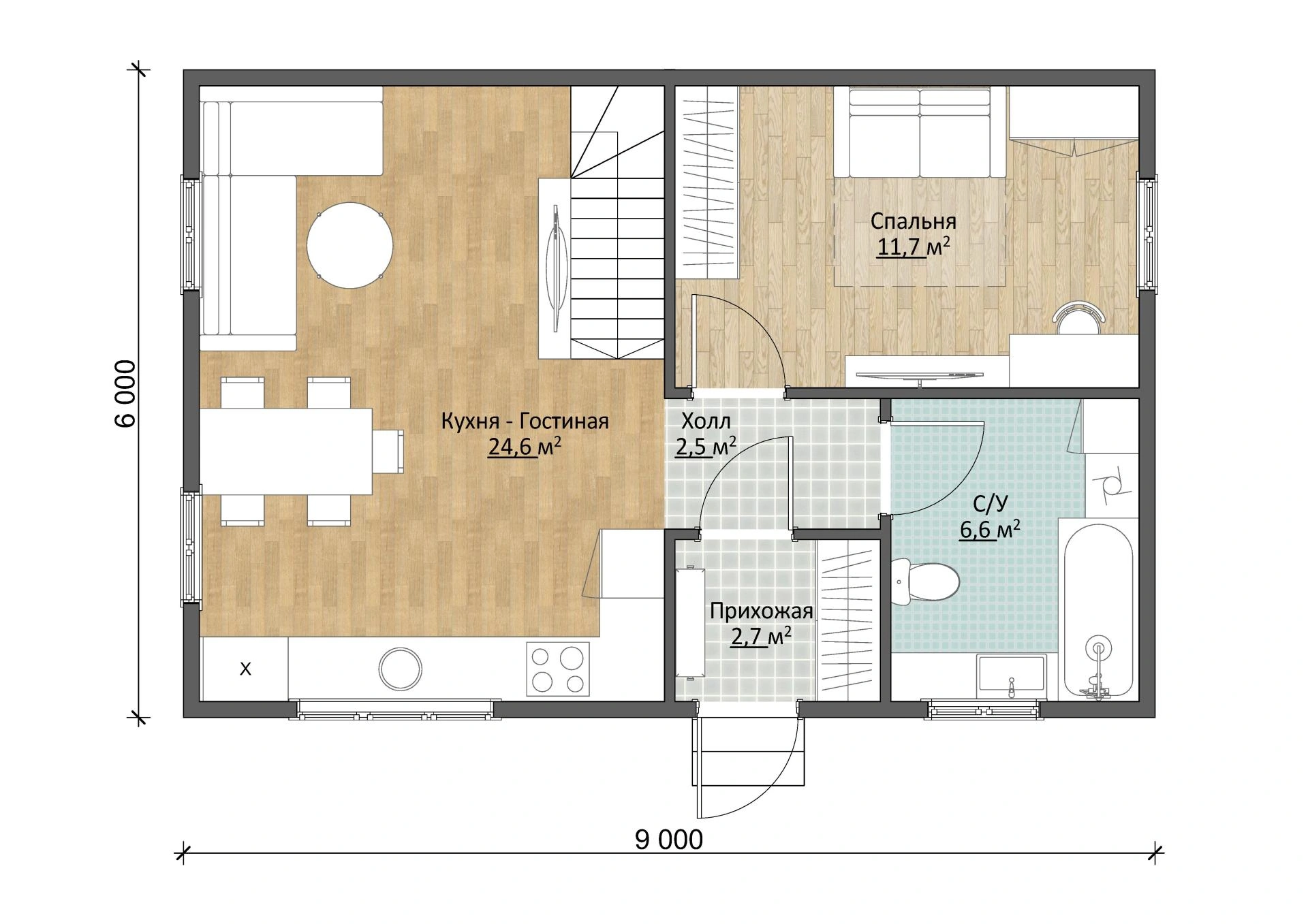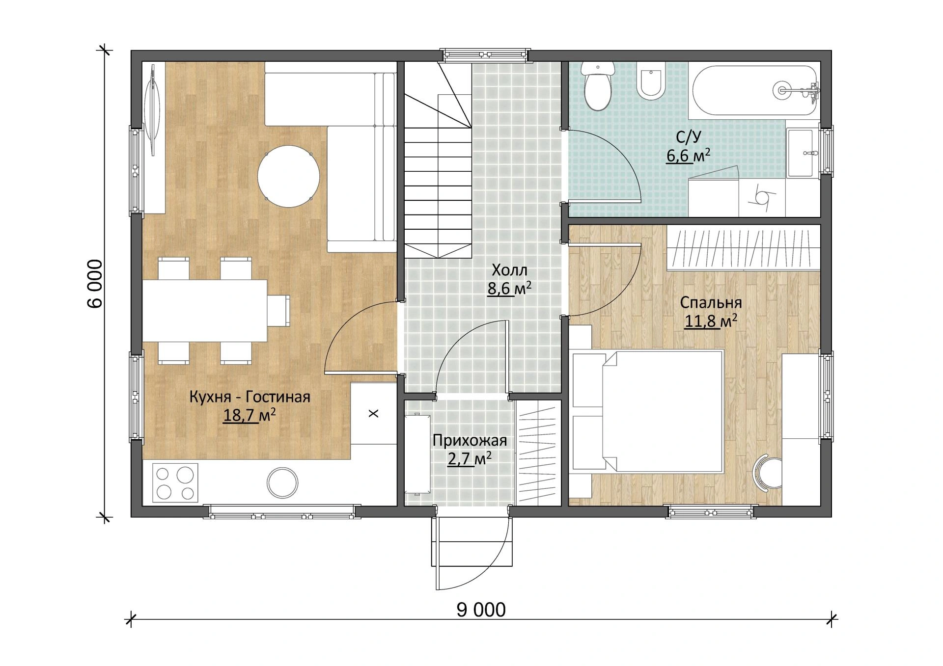 Дачный дом 6х9 из бруса прослужит вам многие годы. Его прочная структура выдерживает любые погодные условия и изменения почвы. А уютное крыльцо-терраса будет излюбленным местом всех членов семьи.