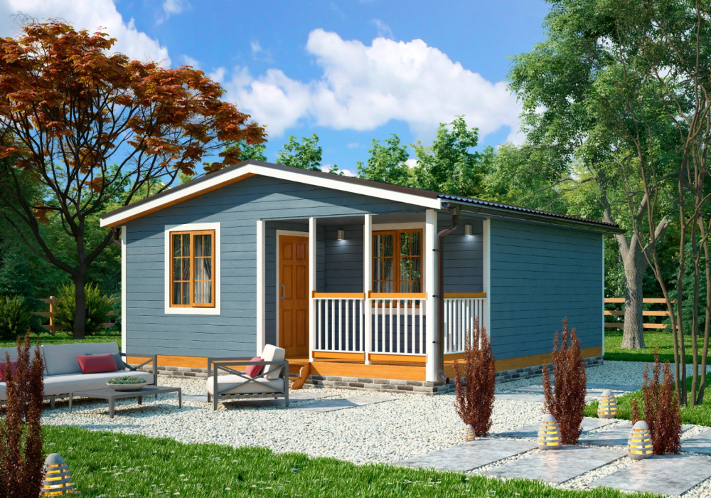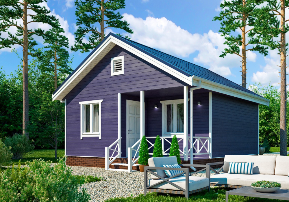 Одноэтажный садовый дом можно использовать в качестве временного жилья на даче или как место для постоянного проживания небольшой семьи. Удачная планировка включает все, что нужно для комфорта.